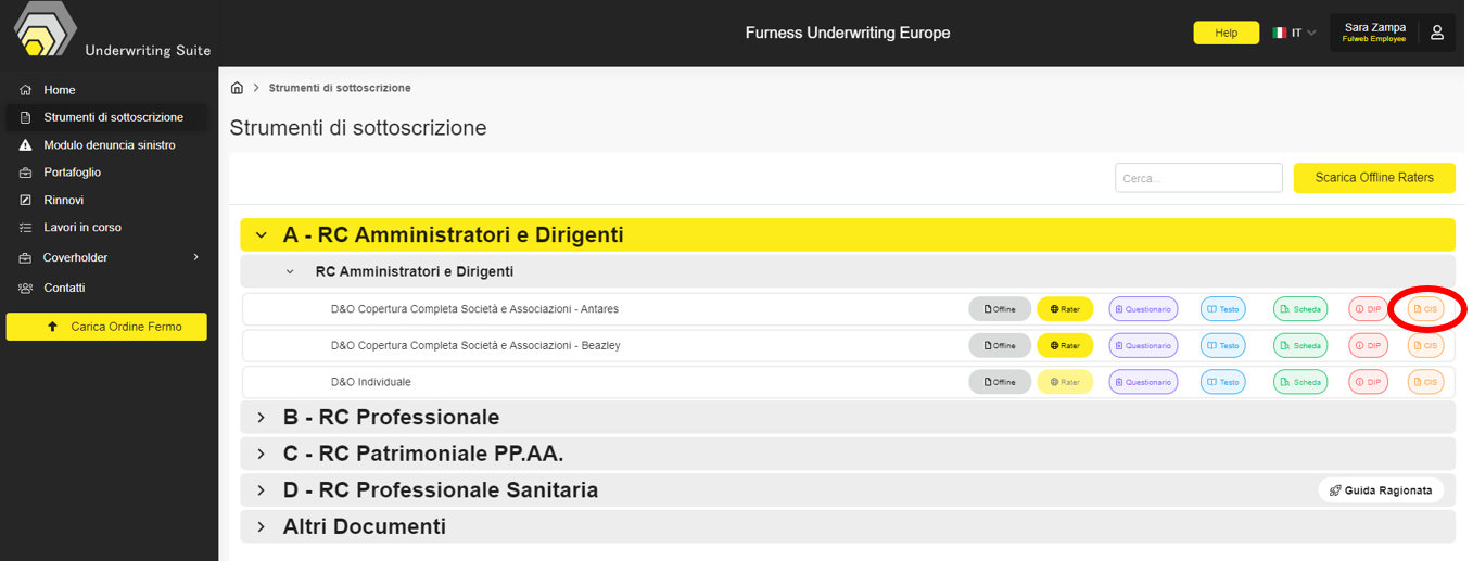 Il cis lo puoi trovare in Underwriting Suite Tools